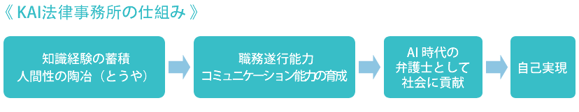 KAI法律事務所では、入所弁護士が仕事を通じて成長できるように事務所内部で様々な工夫をしています。- まず全件について、所長が担当者の一員となり責任を持つことになっています。